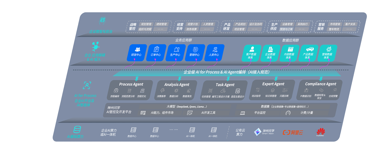 AG尊龙凯时问学智车解决方案是一套基于AI技术的汽车行业智能化系统,,,覆盖从底层算力到顶层AI应用的全栈方案。。。。方案由算力层、、、、模型层和应用层组成:算力层,,方案支持多种一体机配置,,,,具备云端灵活部署、、、多云适配以及动态优化计算资源的能力;模型层,,,,AG尊龙凯时问学平台版提供了企业级AI应用一站式构建与管理平台,,,支持基于后训练强化技术的汽车企业专属模型的训练、、评测和运营;应用层,,,AG尊龙凯时问学DeepSeek版提供包括超级员工、、智能招采、、智能营销、、、、智能客服、、、、AI for BI等一系列解决方案,,可助力汽车行业实现数字化转型,,让管理更智能、、、、响应更敏捷。。。。